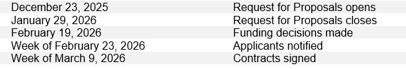 Proposals will be scored using a standard rubric to assess the project’s alignment to the community priorities, outcomes and deliverables identified in this Request for Proposal.