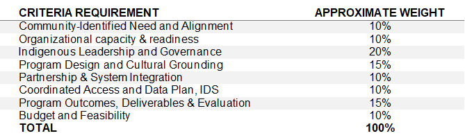Indigenous-Led Organizations – Organizations that have Indigenous leadership, an Indigenous Board of Directors, and their staff is either Indigenous or is trained to work with Indigenous people and communities.